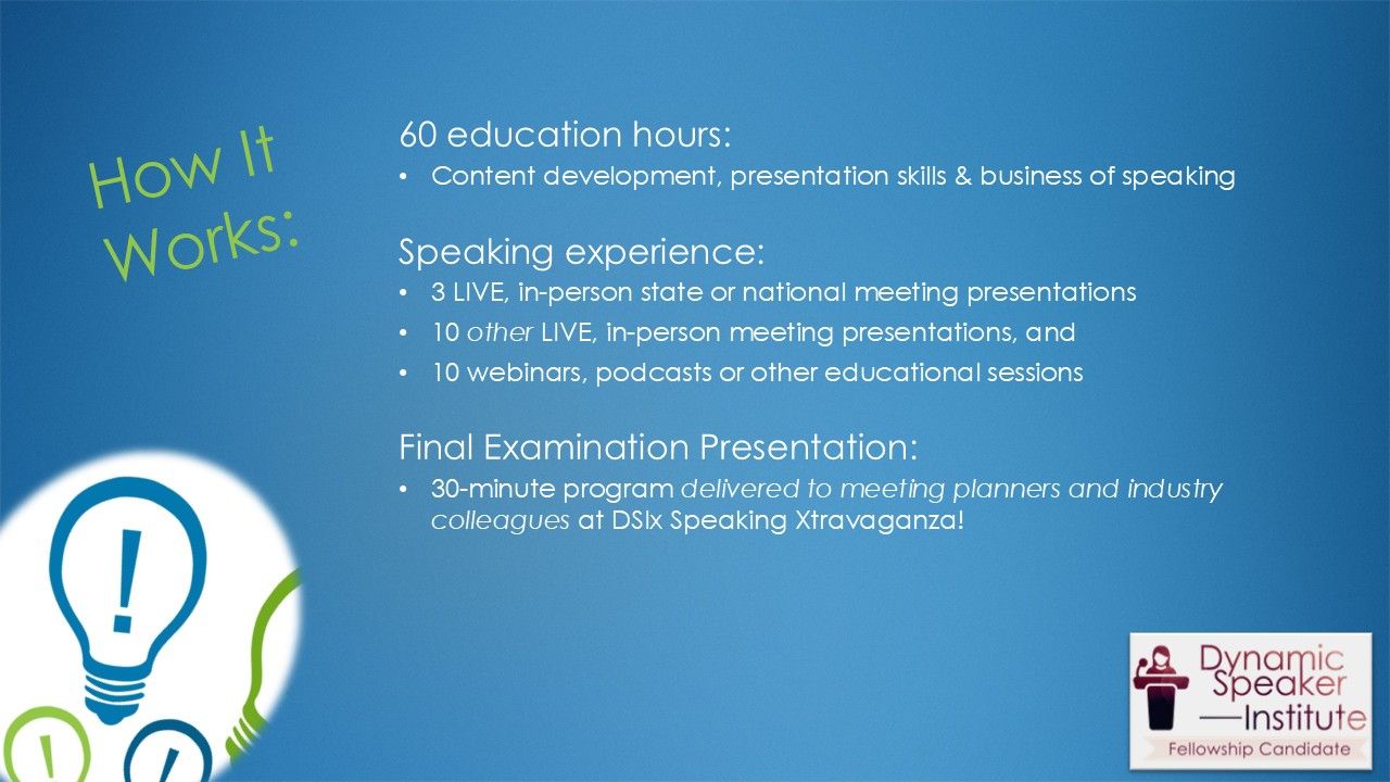 Through workshops, virtual live, recorded, and one-on-one educational opportunities, Dynamic Speaker Institute’s curriculum teaches the techniques, principles, and systems necessary to master the art and business of speaking.